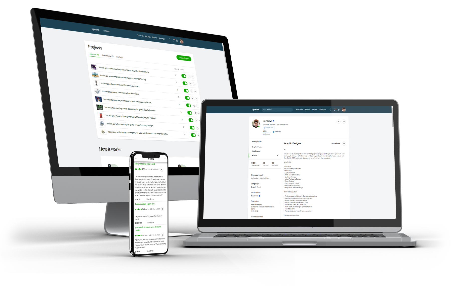 5.00 Jan 30, 2021"Jazib did a great job. I needed a graphic for my portfolio. There were two deliveries with 6!!! graphics each. Communication was very pleasant and friendly at all times. Deliveries were very fast and professionally designed. My feedback was promptly implemented. I think to come back to Jazib for further orders. Thanks a lot.”